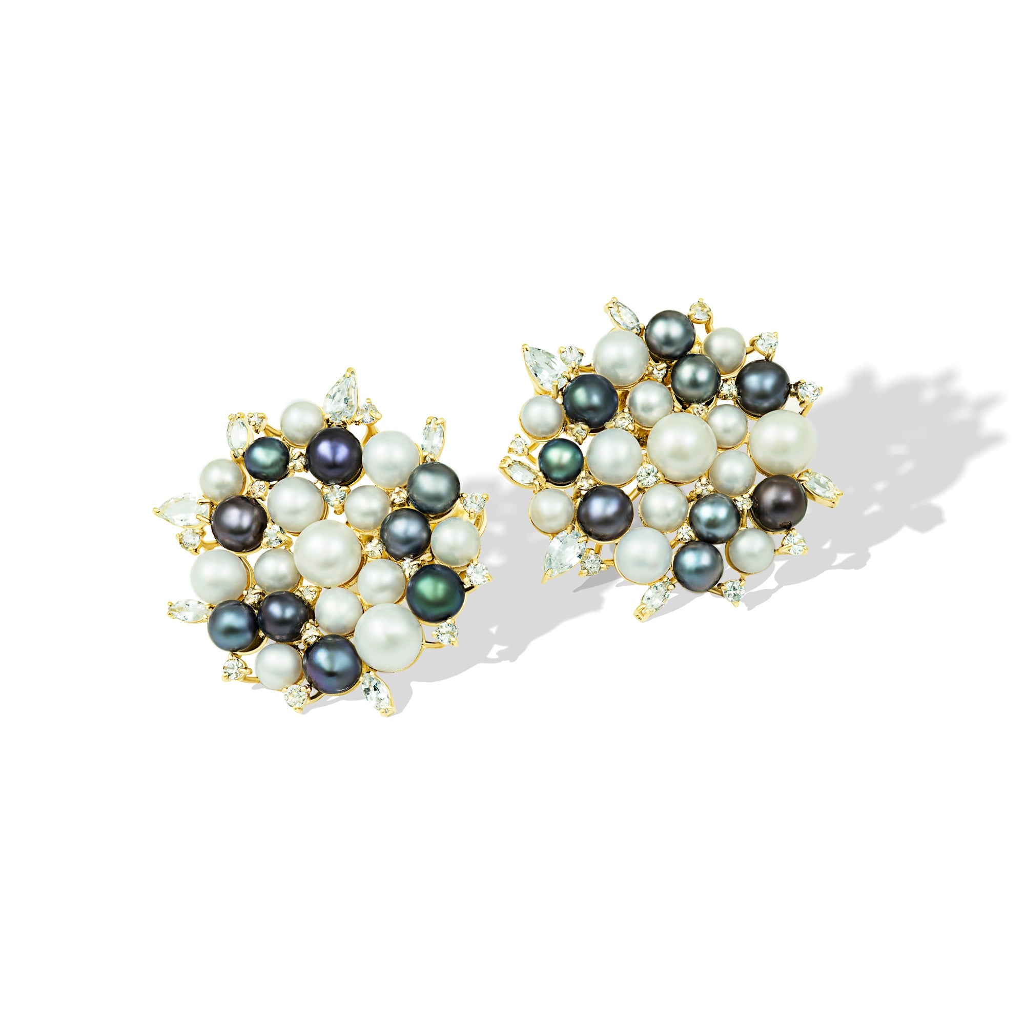 Earrings in Natural Colored Pearls and Natural Diamonds