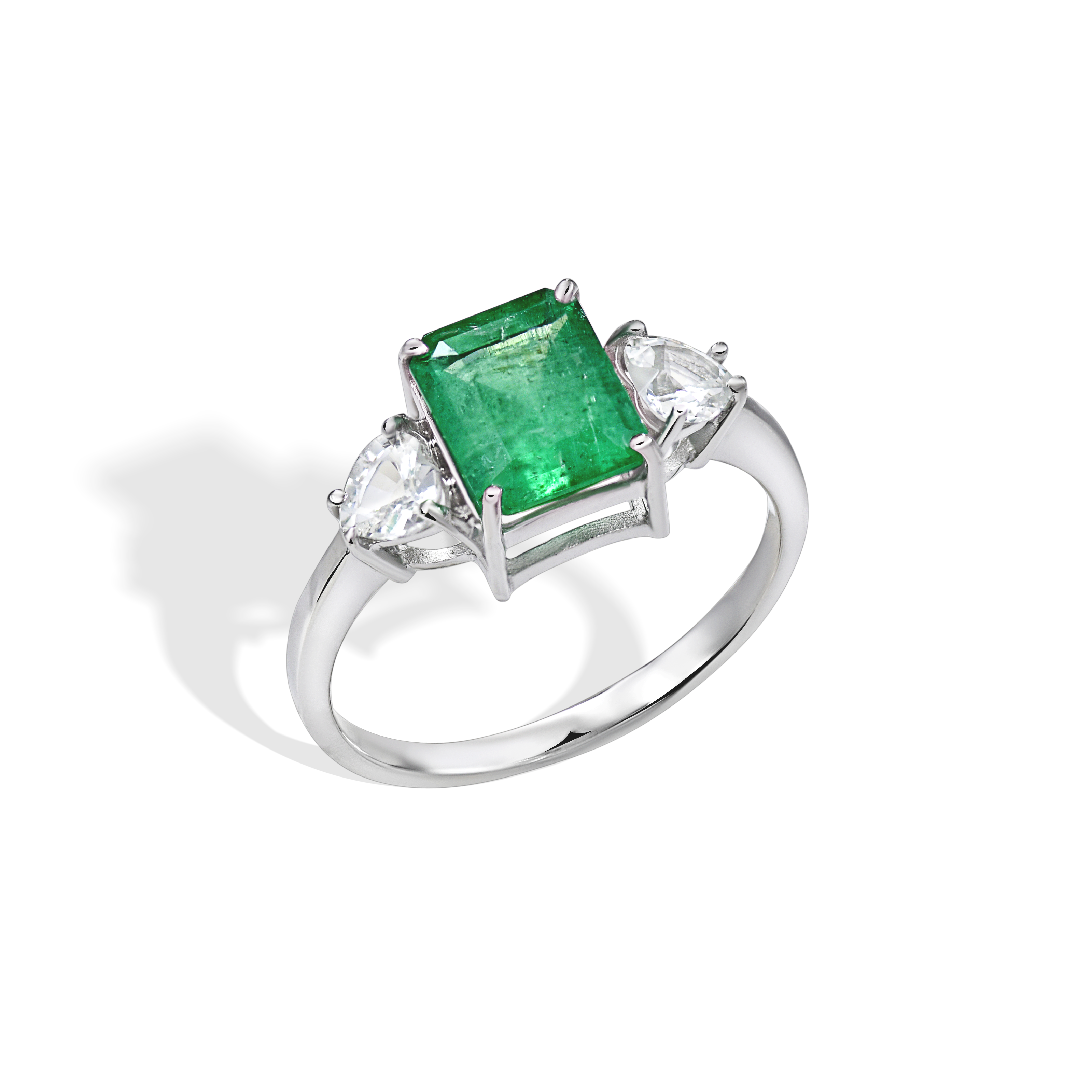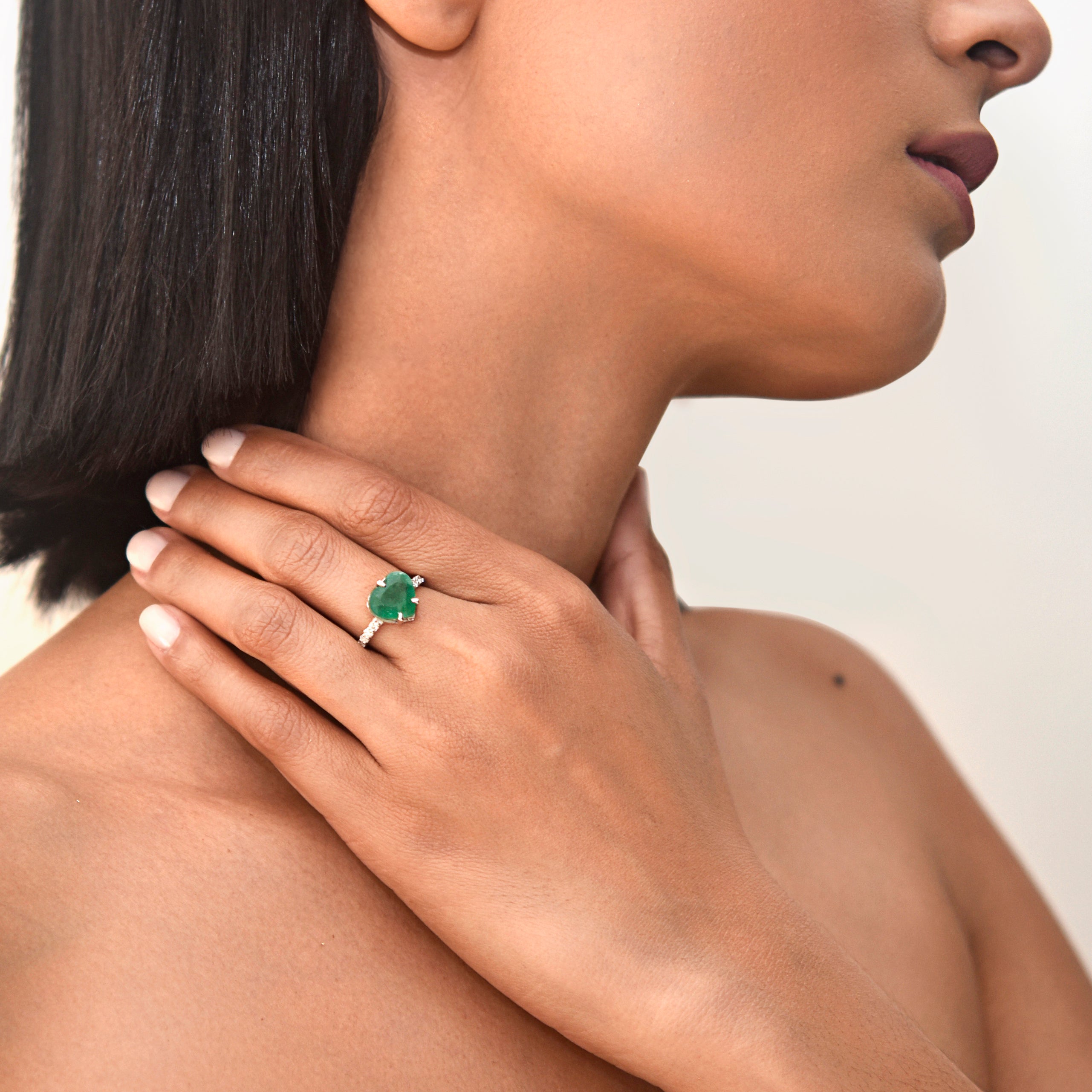Take a daring step and add the Angelina Heart Emerald Ring to your collection! Featuring a stunning 10mm natural emerald heart totaling 3.60CT, this piece symbolizes love and adventure. Accompanied by 8 natural 1.80mm diamonds totaling 0.27CT, this 18k white gold ring is the epitome of luxury and boldness. Dare to make a statement with the Angelina!